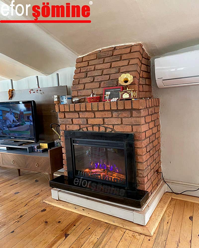Azer'de yaygın olan elektrikli şömine.